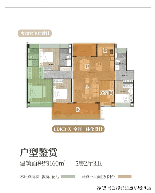 【在售主力户型——160㎡五房三卫户型】——高端改善户型。该户型建面约160㎡,五房三卫设计,定位高端改善,适合三代同堂或人口较多的改善型家庭;南北通透双阳台设计,瞰景阳台约6.9米,视野开阔,可全方位欣赏白云山景观;五开间朝南,采光通风效果极佳,空间尺度阔绰,大方厅设计,适合家庭聚会、会客等需求;主卧带独立衣帽间、独立卫生间与飘窗,私密性与尊崇感拉满;全屋配置高端智能化系统、六大收纳系统,装修标准对标高端豪宅,细节打磨到位,满足高端改善家庭的品质居住需求。