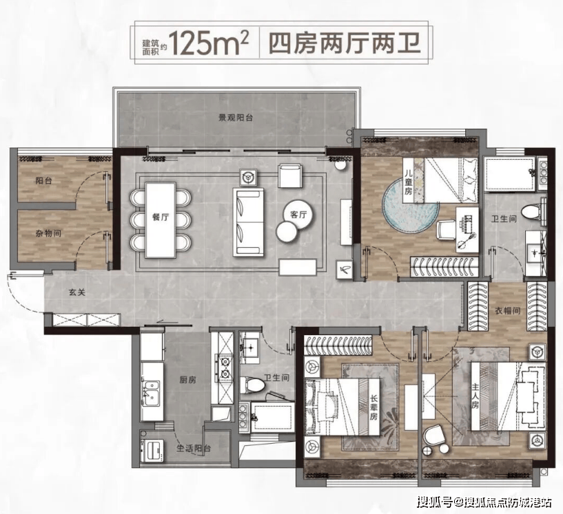 随着家庭成员的增加或对生活品质要求的提升,125㎡的“3+1”户型则成为了改善型客户的最佳选择。该户型包含A1、A1两种版本,同样秉持南北通透的原则。最大的亮点在于那个可变的“+1”空间,它可以根据家庭的实际需求灵活改造。可以是男主人的独立书房,供其静心工作;可以是二孩家庭的儿童房,给孩子独立的成长空间;也可以打造成宽敞的储物间或衣帽间,收纳全家人的杂物。宽敞的阳台设计,不仅延伸了客厅的视觉空间,还提供了休闲观景的绝佳场所。动静分区明确,休息区域私密性极佳,即便家中人口较多,也能互不干扰,和谐共处。总价约275万,却能享受到如此阔绰的空间和功能,实属难得。
